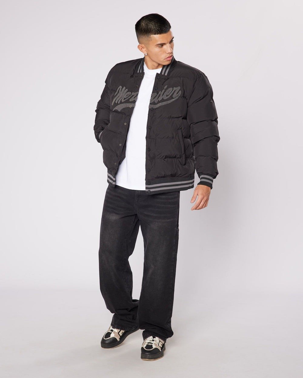 Black Mercier World Coach Mercier Jacket Branding to the back of the jacket Press Snap Fastening Regular Fit Model is 5.8ft