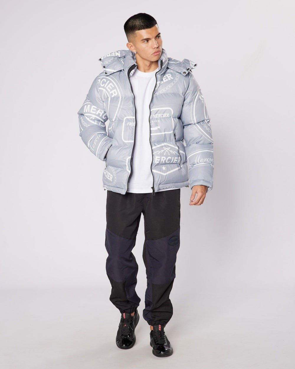 Metallic Mono Badge Mercier Jacket Embroidered Mercier Badges Padded Quilted Design Detachable Hood Water Resistant Full Zip Closure The 2025  Mercier Jacket collection